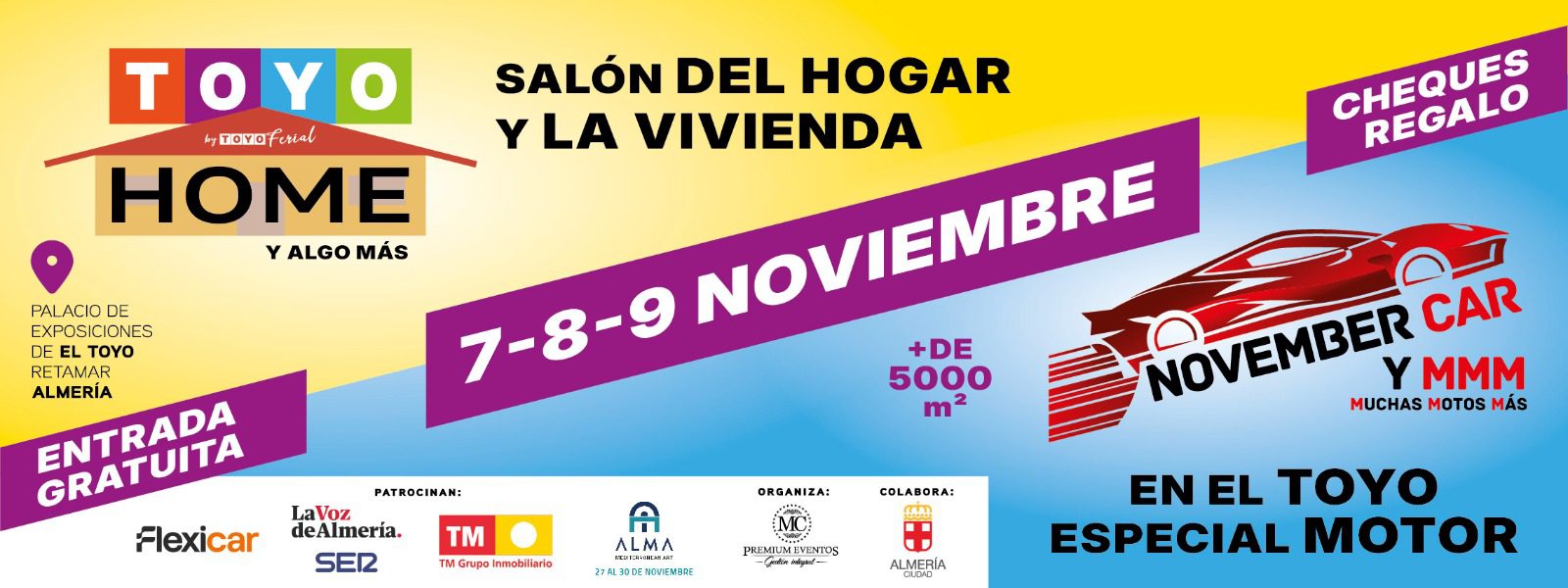TOYO HOME es el nuevo evento que marcará un antes y un después en el sector inmobiliario y de equipamiento del hogar en la provincia de Almería. Miles de visitantes, profesionales y compradores acudir al Palacio de Exposiciones y Congresos El toyo en Retamar los días 7, 8 y 9 de Noviembre de 2025.
